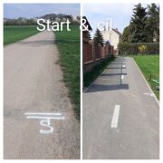 Start bude u žluté cykloznačky, která je cca 500m od železničního mostu, kousek za koupalištěm.
