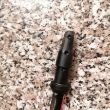 V případě tedy, že nechcete či nemůžete využít rychlovýměnný systém, tak potom je dobré u sebe vozit alespoň klasické nalepovací hroty či tzv. nouzové hroty. Pro výměnu klasických nalepovacích hrotů v terénu je zapotřebí sebou vozit ještě zapalovač, kterým hrot nahřejete a následně sundáte. Nicméně v typicky sychravém a větrném podzimním počasí není rozhodně žádná sranda tímto způsobem hroty měnit. Jednodušší je v takové situaci použít tzv. nouzový hrot. Jedná se v podstatě o velký hrot, který se nasadí na plastový zbytek hrotu na holi a zajistí pomocí tří inbusů. Jedná se o úkon, který není nikterak složitý a zabere jen chvilku.  Je zapotřebí si akorát pohlídat, aby byl hrot správně nasazen a nebyl pootočen. Výhodou je také, že nouzové hroty lze použít na celou řadu běžných hrotů.  Jedinou drobnou nevýhodu je, že hůl je s nouzovým hrotem vždy o cca 1 cm delší. Na druhou stranu rozdíl v délce holí není nikterak dramatický a dá se tedy s takovou holí bez problému jet.